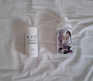 - When the onahole is completely dry, use the KYO Maintenance Powder to apply a thin layer of powder to the outside of the toy. You can use a soft (makeup) brush to spread the powder out further if you want to.