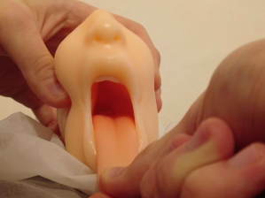 Mein erstes mal damit überraschte mich sehr. Küssen und lecken und mit der Zunge spielen macht super Spaß. Die Zähne sind natürlich gewöhnungsbedürftig und der Mund selbst viel zu klein im Vergleich zu einem echten Mund, den man nicht selbst kontrollieren muss. Das ist aber nach etwas Gewöhnung überhaupt kein Hindernis: Nachdem der Mund richtig feucht gespuckt und geleckt ist, reicht ein bisschen Gleitgel auf dem besten Stück aus, um ein gutes Blowjob und Deepthroat Gefühl zu erleben. Beim Deepthroaten wird die Zunge leicht zurück in den Rachen gedrückt und gibt das erregende Gefühl, als ob man kräftig durchstößt. Das Loch am anderen Ende fühlt sich dann etwas weniger stark an und kann gerne benutzt werden, wenn man es noch etwas hinauszögern möchte.