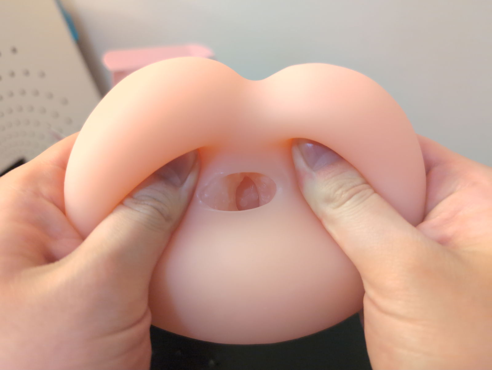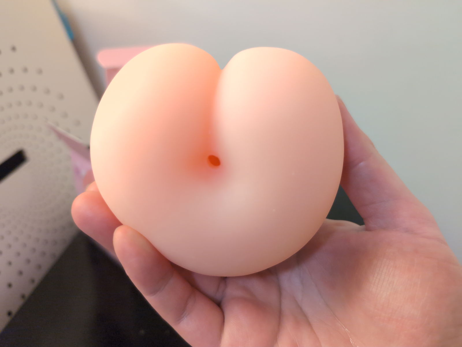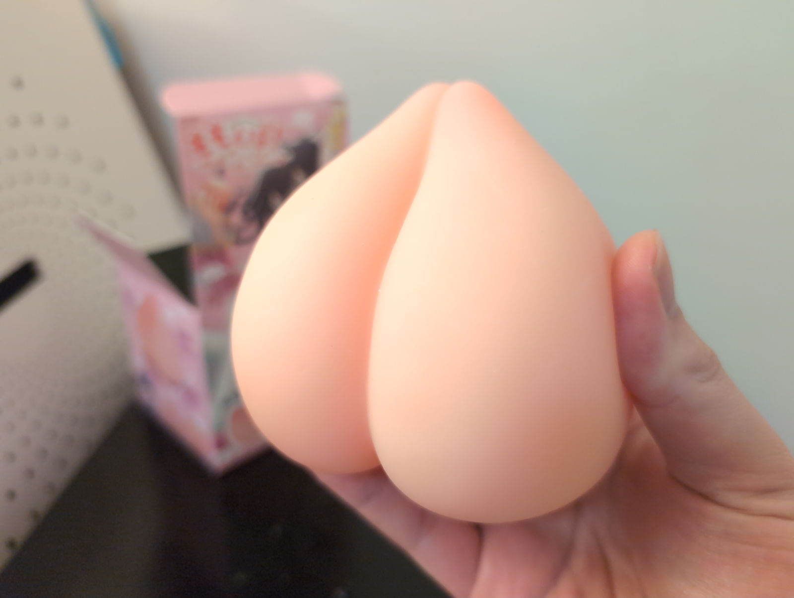 The moment I unboxed the Peach Ball Onahole, I couldn't help but smile at just how adorable this little thing is. At only 360 grams and roughly twice the size of a Tenga egg, it's incredibly compact and fits perfectly in your palm. The packaging really commits to the peach aesthetic with cute anime-style artwork featuring an innocent-looking girl, creating an immediately charming first impression. It's small enough and inconspicuous so it could double as a stress ball when you're not using it. The small anal-style orifice is positioned naturally, and despite its diminutive size, it's just very cute which sets expectations for a fun, lighthearted experience.